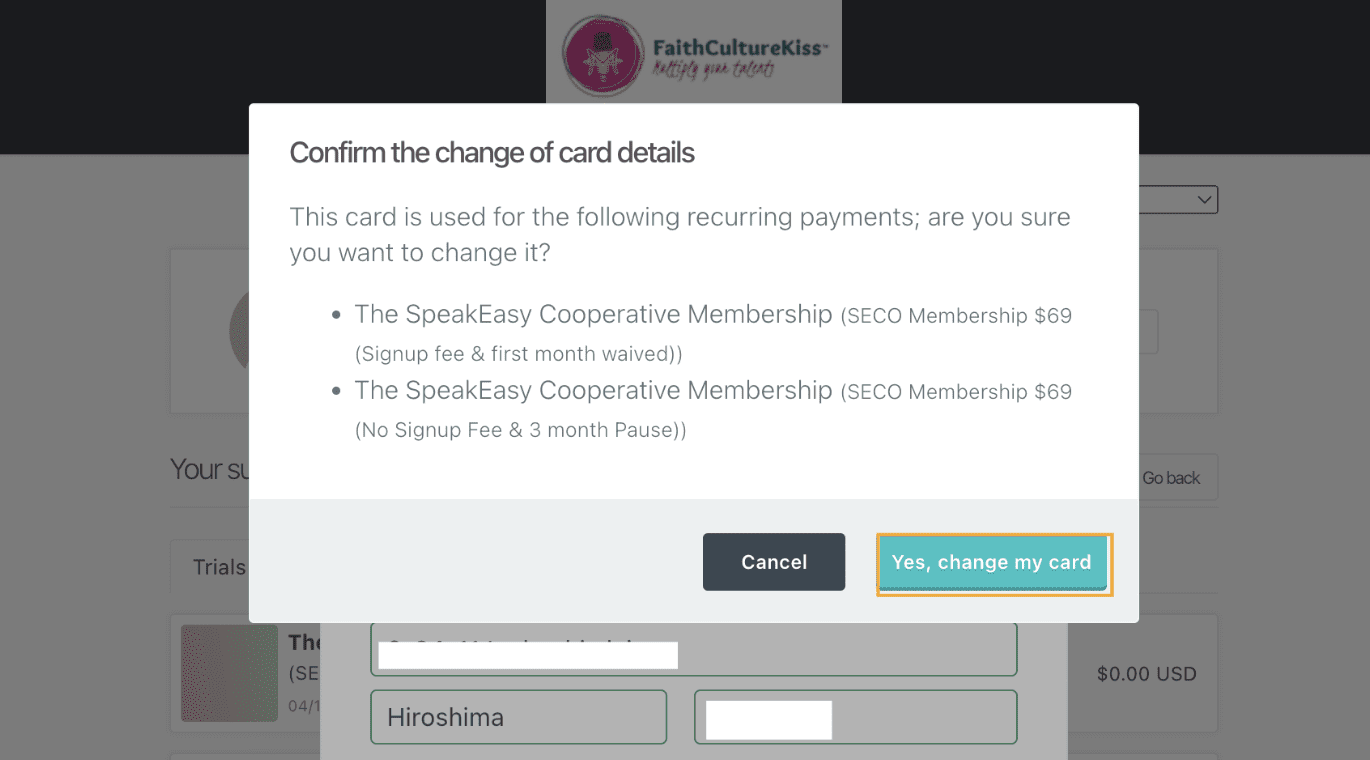 - Confirm by clicking “Yes, change my card”